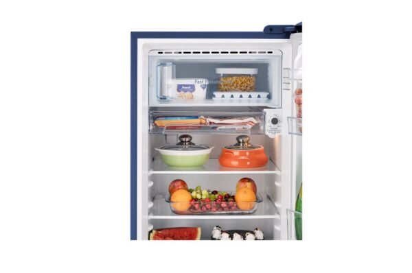 The interior comes with 2 spill-proof toughened glass shelves (load capacity up to 175 kg), 2 bottle holders, an egg tray, and a 12.6 L vegetable compartment with lattice-type cover to maintain optimal moisture. The anti-bacterial and air-tight gasket ensures hygiene and prevents odor transfer.